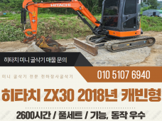 미니굴착기 1~3ton팝니다 ZX30캐빈형/풀셋히타치 / 2018년6월