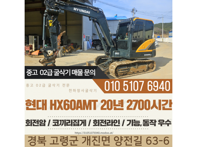 02급 5~6ton팝니다 HX60AMT/회전링크/코집현대 / 2020년6월