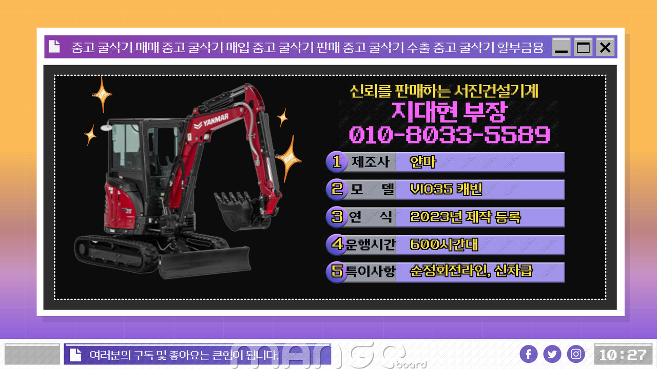 *전문 상담 문의 :010-8033-5589 서진건설기계 부장 지대현