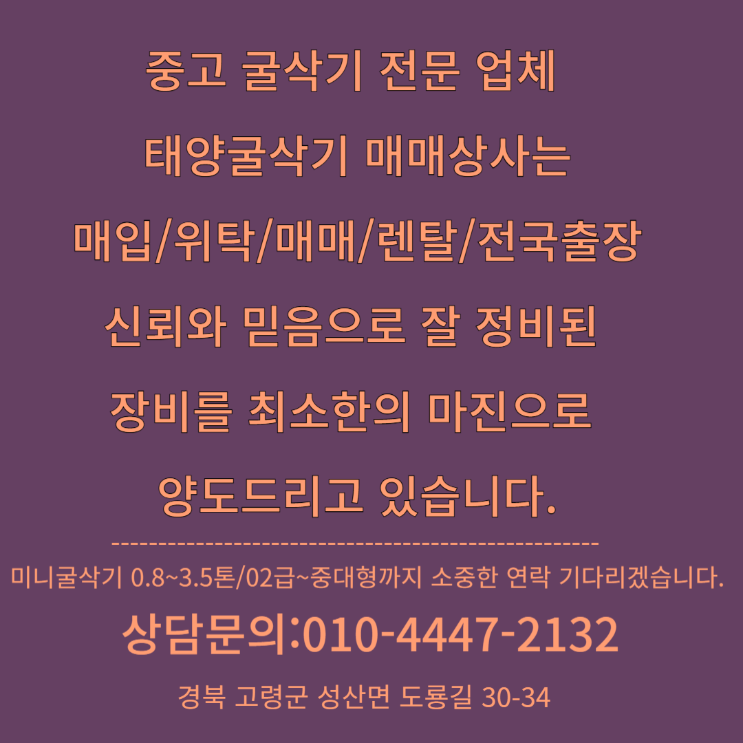 실력있는 전문가와 함께 !!잘 정비된 굴삭기!!최소한의 마진과 !!합리적인 최저가!!로 고객분들의 신뢰에 답하겠습니다
