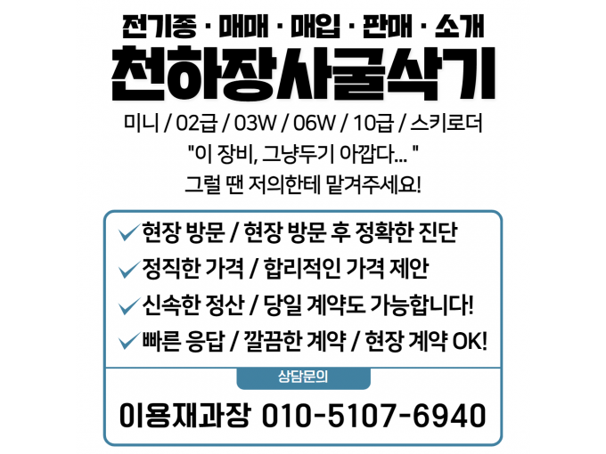 중고굴삭기 매매 매입,판매 전문 천하장사굴삭기 이용재과장